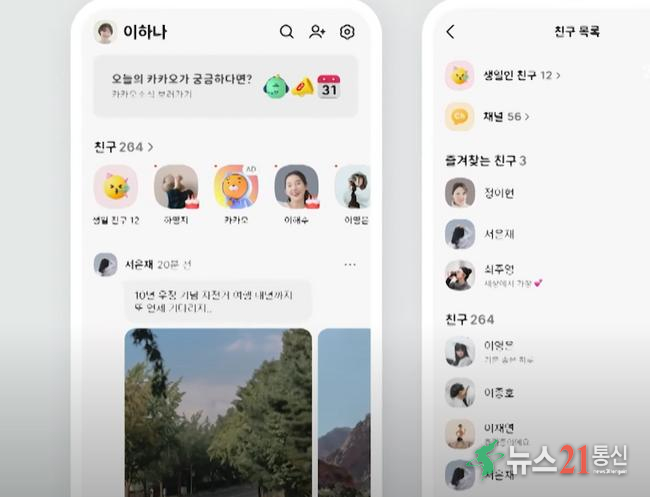 카카오톡 개편 후 친구탭이 타임라인 형태로 확인 가능해졌다. [사진=SBS뉴스영상캡쳐]