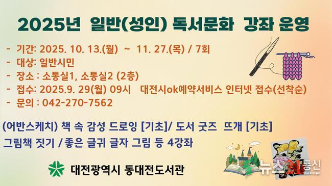 동대전도서관 관계자는 “시민 누구나 일상에서 책과 문화를 가까이할 수 있도록 다양한 독서 문화 프로그램을 마련했다”며 “앞으로도 시민과 함께 성장하는 열린 독서 문화 공간을 만들겠다”고 밝혔다.