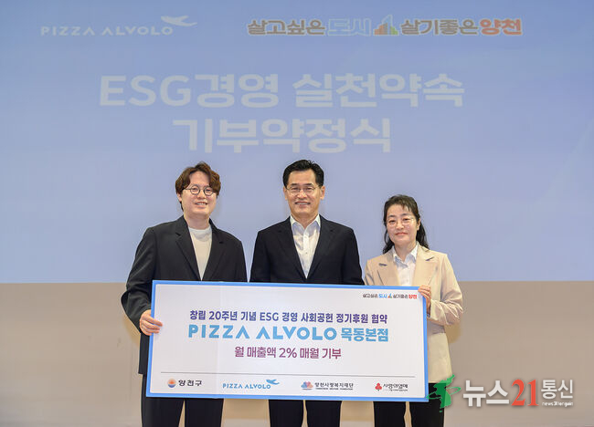 양천구(구청장 이기재)는 9월 24일 해누리타운에서 ㈜알볼로에프앤씨, 양천사랑복지재단과 ‘사랑나눔 프로젝트’ 협약을 체결하고 관내 취약계층을 지원하기로 했다.