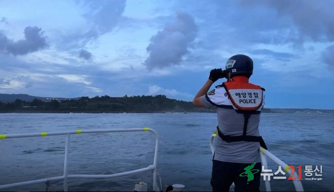 서귀포해양경찰서에 따르면 24일 오후 5시 40분쯤 서귀포시 하효동 쇠소깍 하효항 방파제 동쪽에서 수영 중이던 20대 남성 A씨(서울 거주)가 보이지 않는다는 신고가 119로 접수됐다.