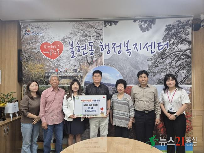 김영미 불현동장은 “나눔을 실천해 주신 34통 마을회에 감사드리며, 후원금은 도움이 필요한 주민을 위해 뜻깊게 쓰겠다”고 전했다.