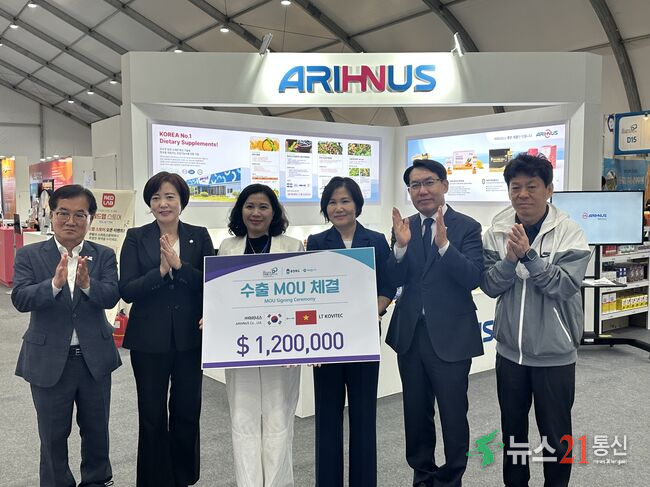 제천국제한방천연물산업엑스포 조직위원회는 25일, 엑스포 산업관에 입주한㈜아리너스가 베트남 엘티 코비텍(LT KOVITEC)과 120만 달러(약 17억 원) 규모의 수출협약을 체결했다고 밝혔다.