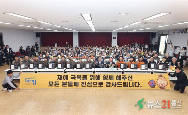 서태원 군수는 “지역사회의 안전을 위해 수해 복구에 헌신적으로 임해주신 모든 분들께 깊이 감사드린다”며 “오늘의 표창은 여러분 한 분 한 분의 공적을 기리는 동시에, 우리 공동체가 어려움을 함께 이겨낸 상징이라 생각한다”고 말했다.
