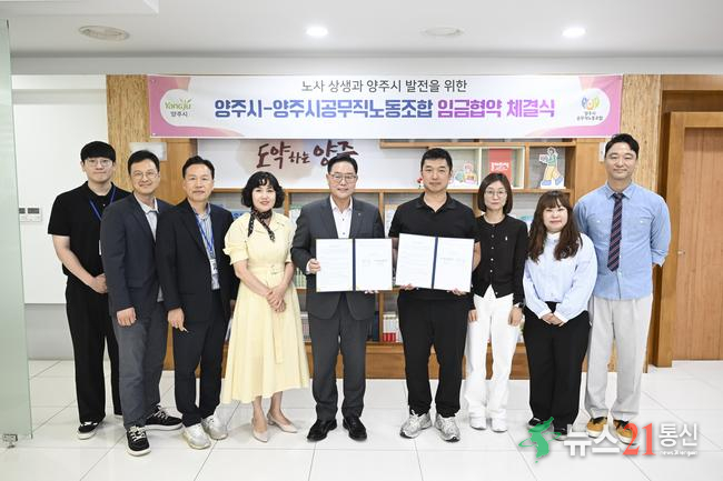 양주시가 최근 양주시공무직노동조합과 함께 2025년 공무직 임금협약 체결식을 갖고 상호 신뢰와 협력을 바탕으로 한 상생의 노사문화를 재확인했다.