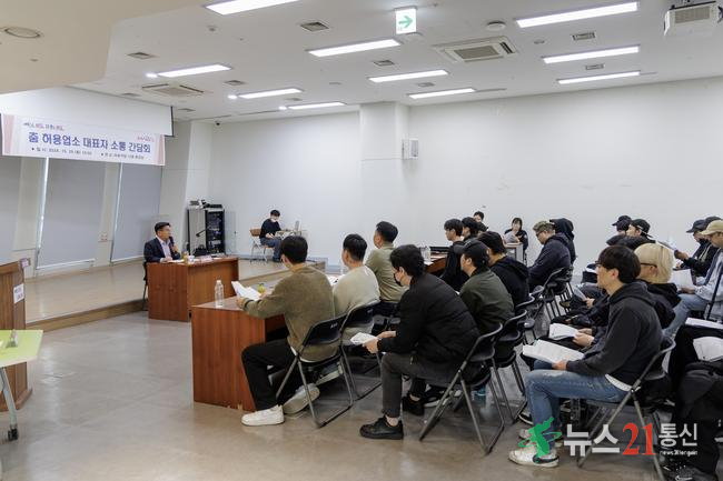박강수 마포구청장이 춤 허용업소 대표자와 소통하고 있다. (사진제공:마포구청)