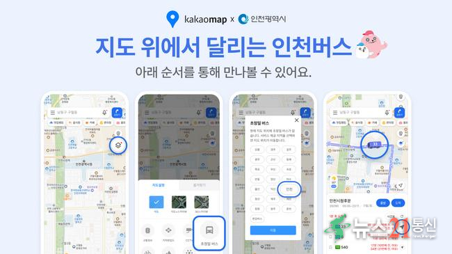 사진제공:인천광역시청인천광역시(시장 유정복)는 오는 9월 30일부터 카카오맵을 통해 시내버스의 실시간(초정밀) 위치 서비스를 제공한다고 밝혔다. 시민들은 카카오맵 첫 화면 상단 검색창 옆 메뉴바(≡)에서 ‘초정밀 버스’ 기능을 활성화하면 누구나 간편하게 이용할 수 있다.