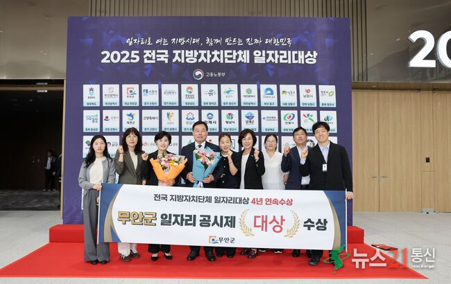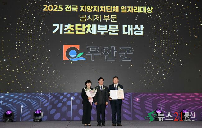 [뉴스21 통신=박철희 ]전남 무안군이 ‘2025년 전국 지방자치단체 일자리대상’에서 일자리 공시제 부문 대상을 수상하며 국무총리 기관표창과 함께 인센티브 사업비 8,500만 원을 확보했다.