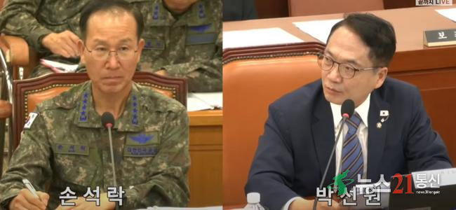 29일 서울 여의도 국회에서 열린 국방위원회 전체회의에서 손석락 공군 참모총장 , 더불어민주당 박선원 의원이 질의 응답을 하고 있다. (사진=MBC뉴스영상캡쳐)