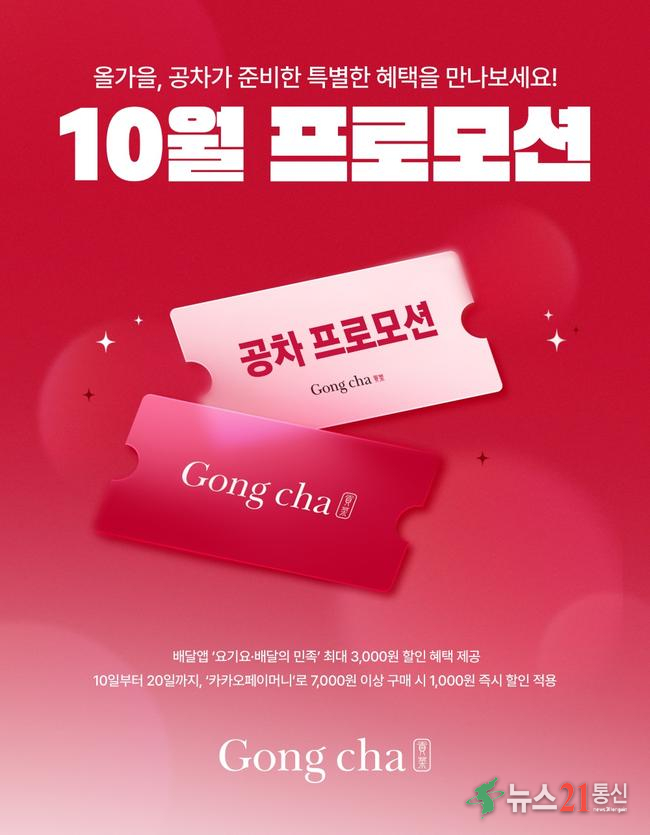 글로벌 프리미엄 밀크티 브랜드 공차코리아(Gong cha Korea)가 10월을 맞아 다양한 제휴 프로모션을 선보인다. 이번 행사는 가을철 고객들이 공차 음료를 더욱 합리적이고 편리하게 즐길 수 있도록 기획됐다.