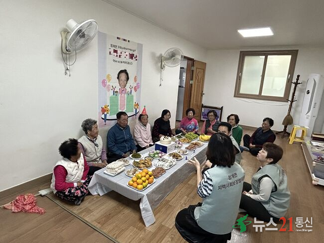 [뉴스21 통신=박철희 ] 청계면 지역사회보장협의체(공동위원장 강미간, 박정수)는 지난 31일 송현리에서 홀로 생활하는 장수 어르신을 위해 마을 주민들과 함께 따뜻한 생신상 차림 행사를 마련했다.이번 행사는 청계면 마을 부녀회와 협의체 위원들이 후원기금을 통해 직접 준비한 제철 나물, 과일, 미역국, 떡 등 정성과 마음이 담긴 음식들.