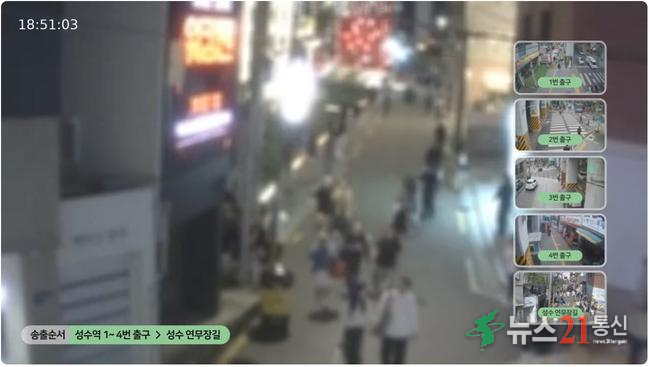 이에 성동구는 지난해 10월부터 성수역 4개 출구 주변의 무인카메라(CCTV) 영상을 유튜브 채널을 통해 실시간 송출하여 주민과 방문객들이 인파 혼잡도를 실시간으로 확인 가능하도록 했다.