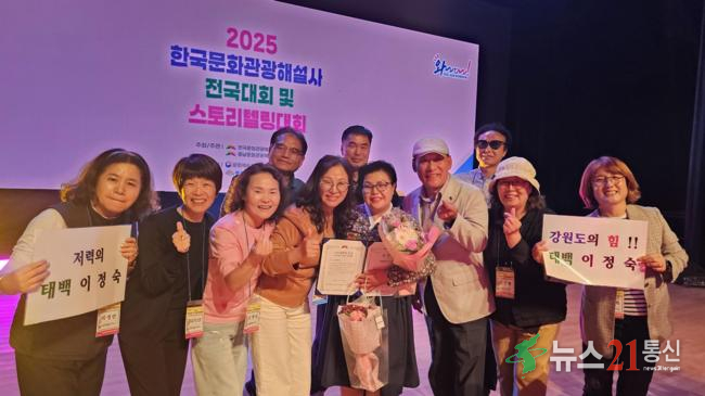 태백시(시장 이상호)는 시 문화관광해설사 이정숙 씨가 지난 9월 29일부터 30일까지 충남 부여에서 열린 「2025년 한국문화관광해설사 스토리텔링 경연대회」에서 최고상인 금상을 수상했다고 밝혔다.