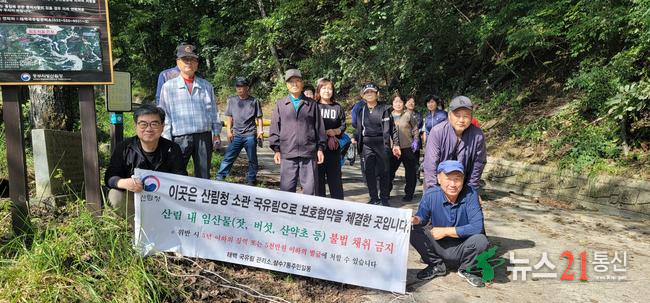 이날 활동에는 삼수동 7통 주민과 국유림관리소 직원 등 15명이 참여했으며, 싸리밭길 일원에서 ▲임산물 불법채취 단속 홍보 ▲무단투기 쓰레기 수거 ▲산불 위험 요소 점검 등 다양한 정화·예방 활동을 펼쳤다.