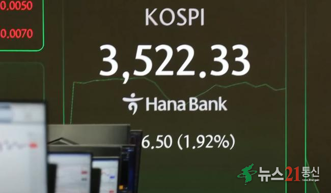 이날 오전 10시 51분 기준 코스피는 전 거래일보다 105.53포인트(3.05%) 오른 3,561.36을 기록했다. 지수는 장 초반부터 전장 대비 69.65포인트(2.02%) 상승한 3,525.48로 출발해 단숨에 3,500선을 넘어선 뒤 상승폭을 키워갔다. 이는 지난달 15일 처음으로 3,400선을 돌파한 지 불과 보름 만의 기록이다.
