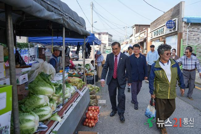 김기웅 서천군수는 추석 명절을 앞두고 지역 전통시장을 방문해 상인들을 격려하고 주민들과 소통하는 시간을 가졌다.(사진제공:서천군청)
