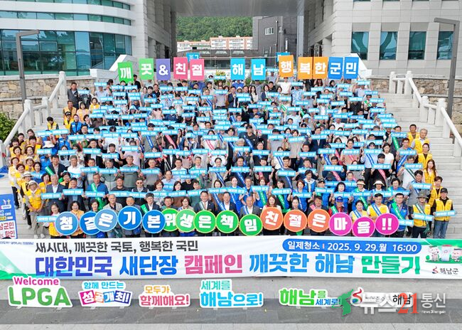 군은 9월 29일 군청 앞 군민광장에서 ‘대한민국 새단장 캠페인’과 ‘관광 친절·위생 결의대회’를 개최하며 청결하고 친절한 해남 만들기에 군민과 함께 나섰다.