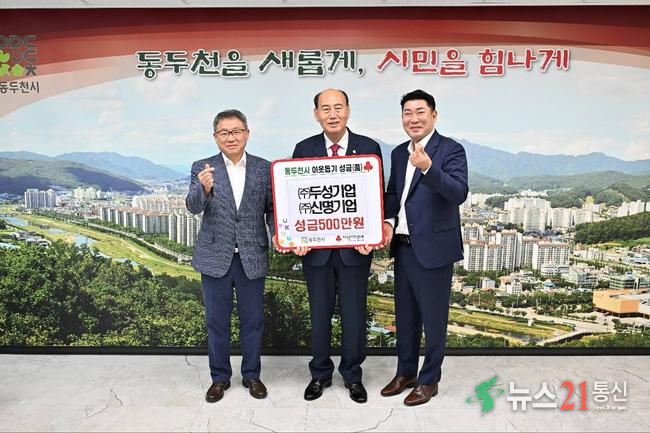 ㈜두성기업(대표 고광종)과 ㈜신명기업(대표 이주한)은 추석 명절을 맞아 지난 10월 1일 동두천시청을 방문, 저소득 가정을 지원하기 위해 각각 250만 원씩 총 500만 원을 기탁했다.