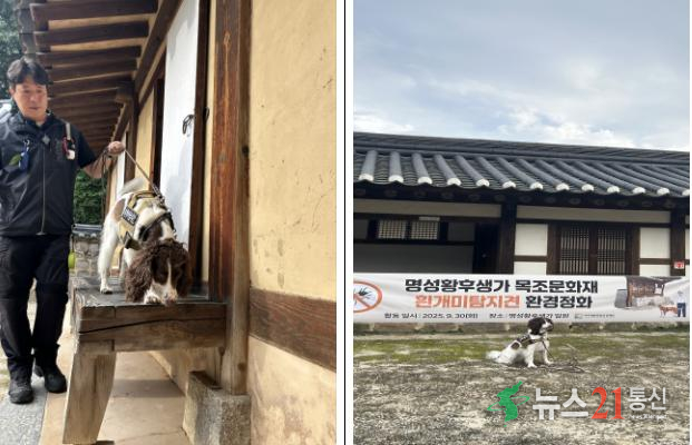 여주세종문화관광재단은 지난 9월 30일(화) 오후 4시, 명성황후 생가와 감고당 일원에서 흰개미탐지견을 활용한 목조 문화재 점검 활동을 실시했다.