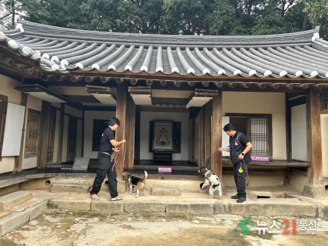 여주세종문화관광재단은 지난 9월 30일(화) 오후 4시, 명성황후 생가와 감고당 일원에서 흰개미탐지견을 활용한 목조 문화재 점검 활동을 실시했다. (사진=여주시 제공)
