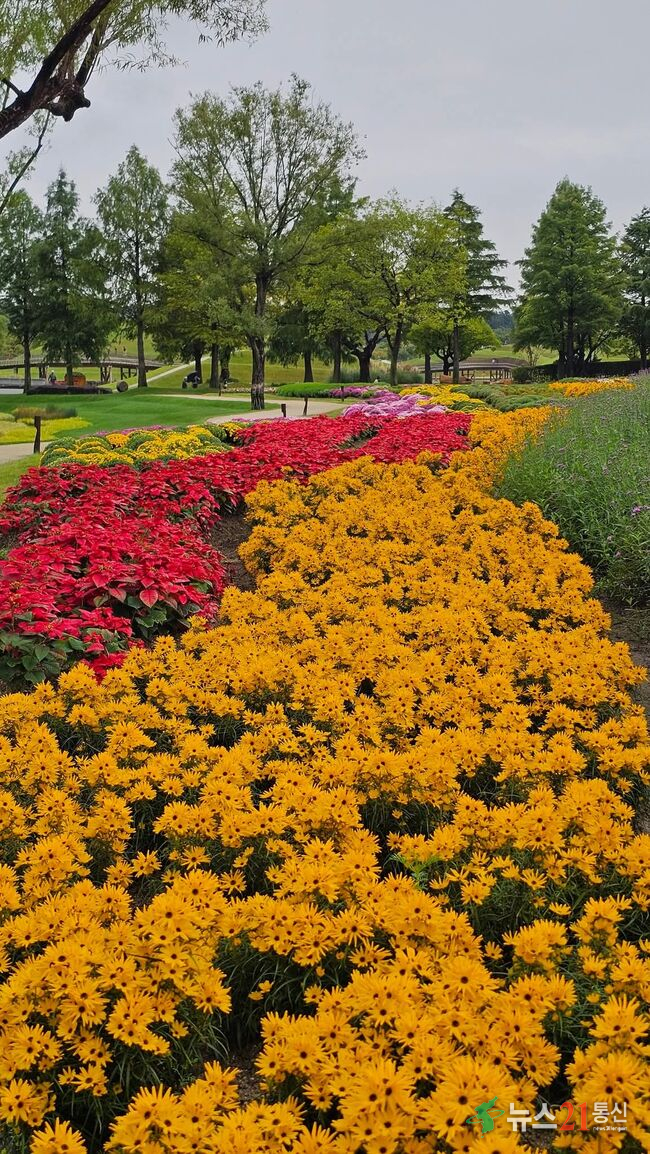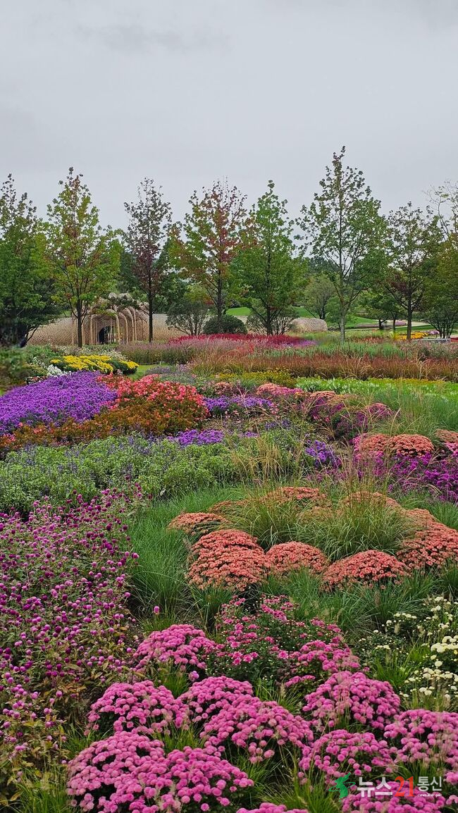 순천만국가정원에 가을이 내려앉자, 화려한 색감의 꽃들이 하나의 물결처럼 펼쳐져 방문객들을 맞이한다. 붉은 빛, 노란 빛, 분홍빛의 꽃들이 조화를 이루며 마치 살아있는 그림처럼 정원을 수놓아, 발걸음을 멈추고 오래 머물게 만든다.