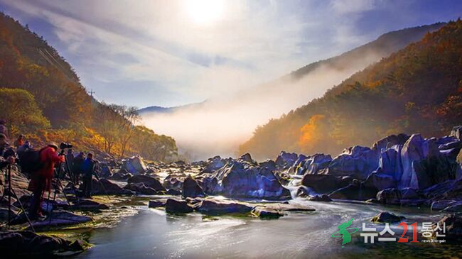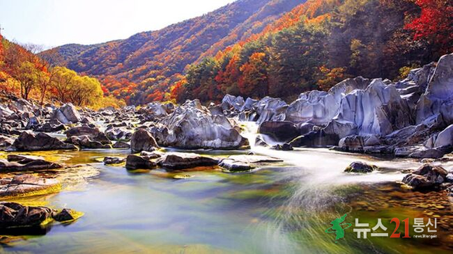 청송 백석탄 계곡은 기암괴석과 맑은 물줄기가 어우러져 신비로운 풍광을 자아내는 곳으로, 태고의 흔적을 간직한 듯한 바위결이 특징이다. 햇살을 받아 은빛으로 반짝이는 바위와 계곡 사이로 흐르는 물은 사계절 내내 색다른 아름다움을 보여주며, 특히 가을에는 붉게 물든 단풍과 어우러져 한 폭의 수묵화를 떠올리게 한다.