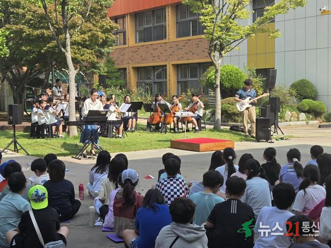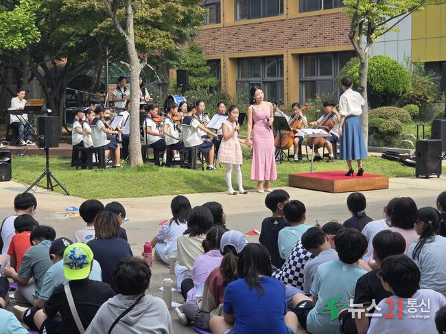 4·6학년은 현장에서 직접 공연을 관람했고, 1·2·3·5학년은 유튜브 실황 중계를 통해 참여해 전교생이 함께하는 축제가 되었다.