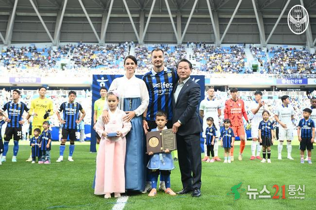 유정복 시장은 “무고사 선수는 단순한 외국인 선수를 넘어, 인천의 자랑이자 시민 모두의 희망이 되어 주었다”며, “인천의 발전과 명예에 크게 기여한 공로를 인정해 명예시민증을 수여하게 되었다”라고 말했다.