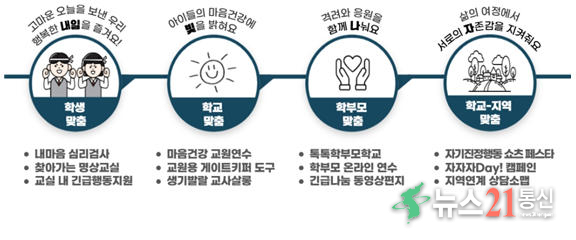 이번 프로젝트는 최근 관내 학생 자살이 전년 대비 크게 증가하는 등 심리·정서적 위기 대응이 시급한 상황에서 모든 학생들의 마음건강을 위한 보편적 예방 프로그램으로 마련됐다.