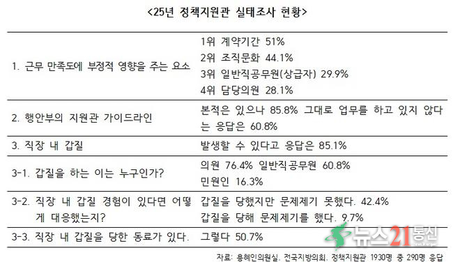 응답자 중 일부는 “설문에 답하는 것조차 조심스러웠다”며, “지방의회에서 정책지원관은 고립돼 있다”고 말했다.