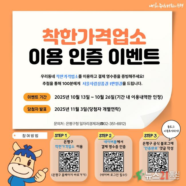 착한가격업소는 물가 안정을 위해 합리적인 가격과 양질의 서비스를 제공하는 업소다. 은평구는 이번 이벤트를 통해 주민들이 더욱 많이 이용할 수 있도록 참여형 이벤트를 마련했다.