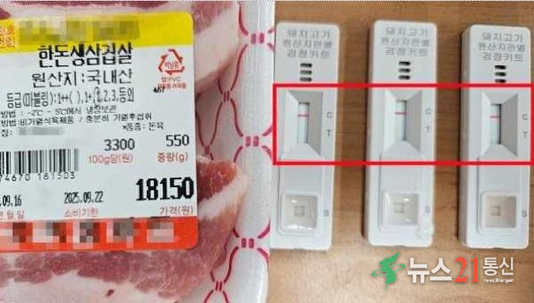 국내산 돼지고기로 표시하였으나, 수입산 판정되어 해당 업체 적발 (사진=서울시)