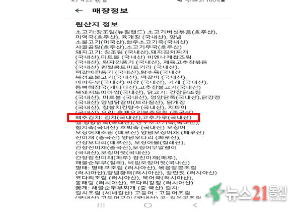 배달앱에 배추김치 고춧가루의 원산지를 국내산으로 표시하여 적발 (사진=서울시)
