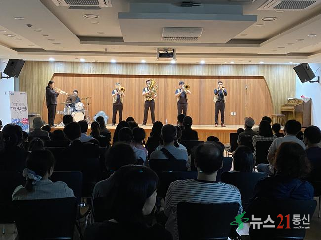 공연은 경기아트센터의 ‘2025 거리로 나온 예술’ 공모사업에 선정돼 추진됐으며, 금관 5중주 공연팀인 ‘조이브라스밴드’가 출연했다. △트럼펫 △호른 △트롬본 △튜바 등 다채로운 금관악기의 풍부한 음색이 어우러져 관객들의 큰 호응을 얻었다.