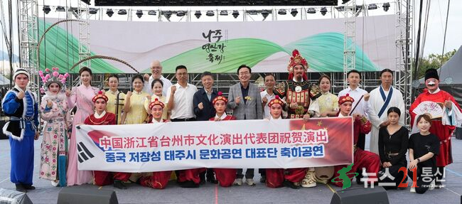 중국 절강성 태주시 문화예술공연단 축하공연전남 나주시(시장 윤병태)는 지난 12일 ‘2025 나주영산강축제’ 마지막 날을 맞아 국제 우호교류도시인 중국 절강성 태주시 문화예술공연단을 초청해 다채로운 공연을 선보이며 축제의 국제적 위상을 한층 높였다.