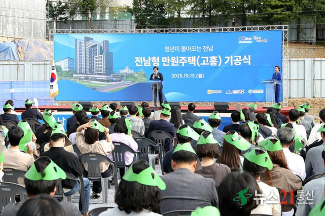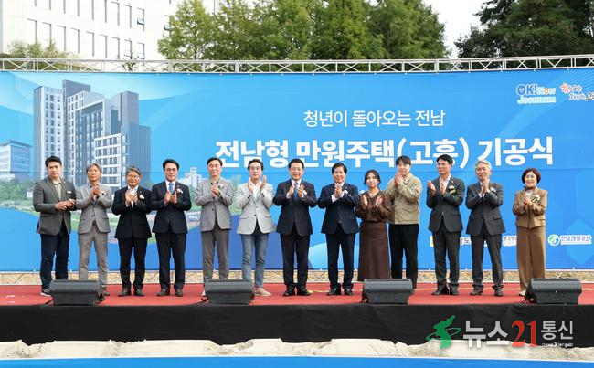 고흥군(군수 공영민)은 13일 고흥읍 성촌리 사업 부지에서 청년 인구 유출을 막고 안정적인 지역 정착을 지원하기 위한 ‘전남형 만원주택’기공식을 개최했다고 밝혔다.