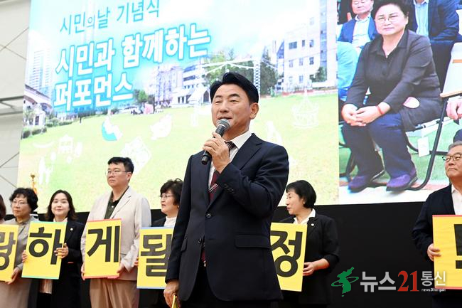 김동근 시장은 “1963년 시로 승격되고 1971년 제정된 의정부 시민의 날은 우리 의정부의 자긍심을 함께 기념하는 뜻깊은 날이다. 각자의 자리에서 헌신해 오신 시민 여러분께 깊은 감사의 마음을 전한다”며 “비로 인해 야외에서 함께하지 못했지만, 시청의 열린 공간인 ‘모두의 운동장’과 ‘시민갤러리’를 시민과 함께 활용하며 언제 어디서나 시민이 주인인 ‘열린 의정부’의 의미를 담아냈다”고 말했다.