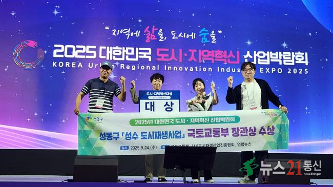 서울 성동구(구청장 정원오)는 성수동의 비약적 발전을 이끈 ‘성수 도시재생사업’ 성과를 인정받아 ‘2025 대한민국 도시·지역혁신대상’에서 일자리 창출 분야 ‘국토교통부 장관상’을 수상했다고 밝혔다.