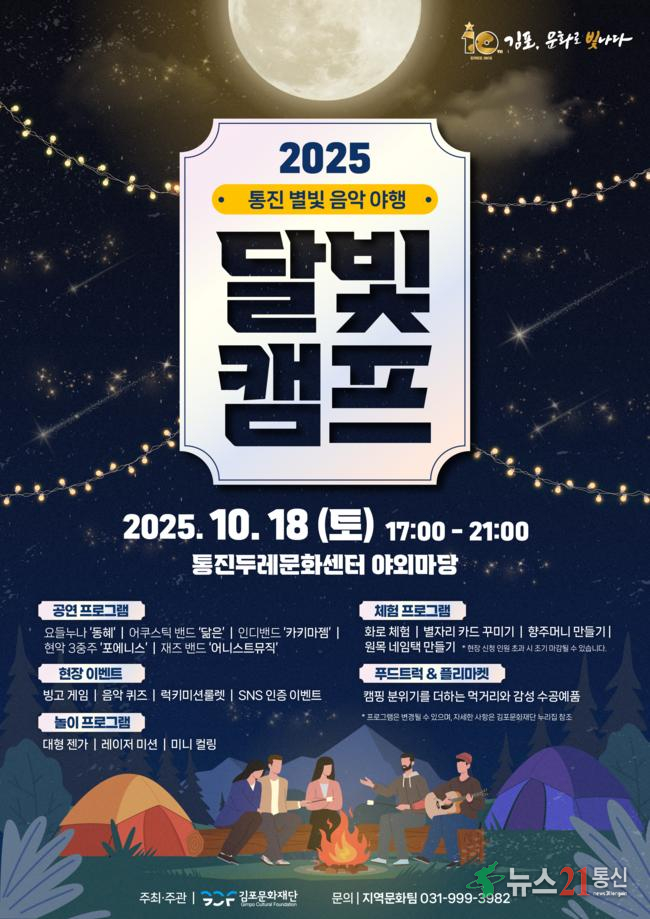 (재)김포문화재단이 주관하는 2025 통진별빛음악야행 <달빛캠프>가 10월 18일 17시부터 통진두레문화센터 야외마당에서 개최된다.