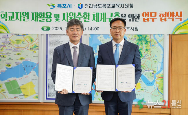 시는 지난 13일 목포시청에서 전라남도목포교육지원청과 ‘학교자원 재활용 및 자원순환 체계 구축’을 위한 업무협약을 체결했다고 밝혔다.