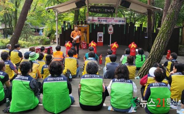 이날 함께 진행한 산불예방 교육에는 한국산불방지기술협회 전문 강사가 참여해 산불의 주요 원인과 예방 행동요령, 화재 발생 시 초기 대응법을 상세히 안내했다. 이어 광진소방서 소속 소방관이 소화기 사용법과 화재 진압 요령을 시연했으며, 주민들이 실제 장비를 다뤄보는 체험도 마련됐다.