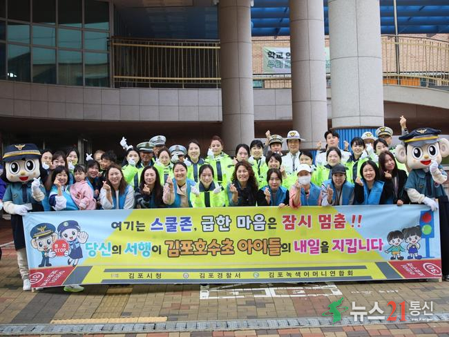 이날 캠페인은 김포호수초등학교와 어린이 교통사고 예방을 위해 “ 여기는 스쿨존, 급한 마음은 잠시 멈춤. ” 이라는 홍보문구와 함께 통행하는 차량의 서행을 유도하 고 주 ·정차 금지 등 어린이들의 안전을 위한 교통지도를 실시했다.
