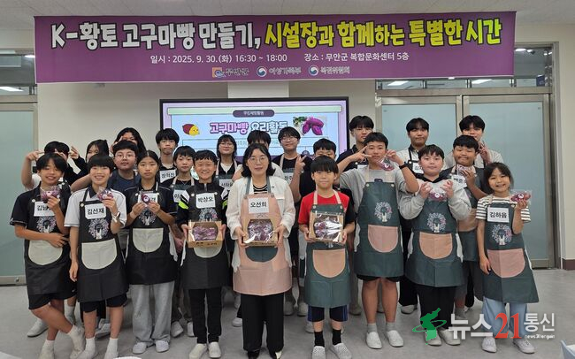 [뉴스21 통신=박철희 ] 전남 무안군(군수 김산) 청소년방과후아카데미가 지난 9월 30일 청소년 20여 명과 함께하는 ‘K-황토고구마 빵 만들기’ 프로그램을 성황리에 개최했다.