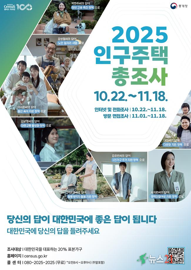 먼저 10월 22일부터 31일까지는 인터넷(census.go.kr) 또는 콜센터(080-2025-2025)를 통한 비대면 조사가 진행된다.