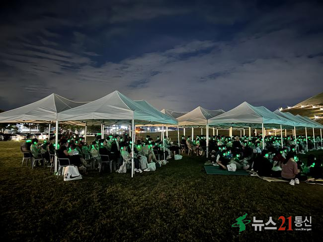행사는 송학동 고분군 일원에서 ▲무소음 영화 상영 ‘달빛 시네마’(영화 쿵푸팬더4)와 ▲무소음 디제잉파티 ‘노노이즈 디제잉’ 등으로 진행됐다. 참가자들은 무소음 헤드셋을 착용해 소음 없이 영화와 음악을 즐기며, 달빛 아래 고분군의 고요한 분위기를 체험했다.