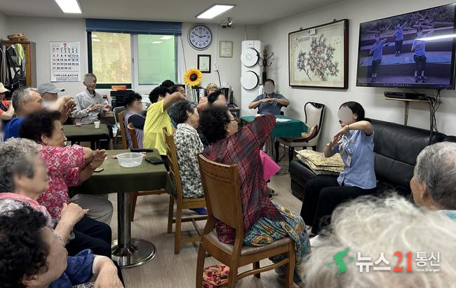 트로트 음악에 맞춰 강사의 구령이 이어지자 경로당에는 웃음과 박수가 터져 나온다. 흥겨운 분위기 속에서 겨울철 안전교육이 본격적으로 시작된다.
