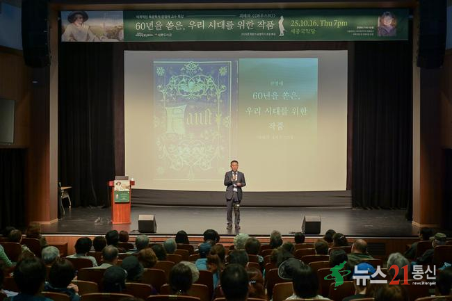 여주시(시장 이충우)는 지난 10월 16일 오후 7시 세종국악당에서 세계적인 독문학자 전영애 서울대학교 명예교수를 초청해 괴테의 대작 <파우스트>를 주제로 한 특별강연을 열었다.