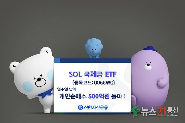 신한자산운용은 ‘SOL 국제금’(종목코드 0066W0) ETF에 최근 일주일간 약 540억원의 개인투자자 자금이 순유입됐다고 밝혔다. [이미지=신한자산운용 제공]