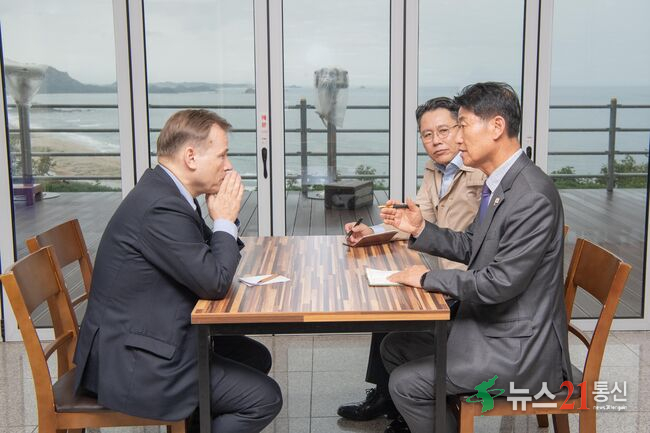 슈미트 대사는 해양심층수 산업에 대해서도 높은 관심을 보였다. 그는 “한국의 해양자원과 지역 먹거리를 세계적으로 알릴 전략이 필요하다”며 “독일은 온천수와 광천수를 활용한 치유문화가 인기를 얻고 있는 만큼, 고성군도 해양심층수를 활용한 힐링 공간을 조성한다면 큰 호응을 얻을 것”이라고 조언했다.