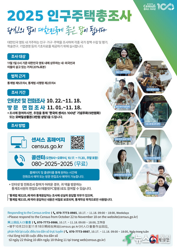 인터넷 참여가 어려운 가구는 콜센터(☎080-2025-2025)를 통해 전화 조사도 가능하다. 인터넷 및 전화 조사에 응답하지 않은 가구는 통계조사원이 직접 방문해 면접 방식으로 조사를 진행할 예정이다.
