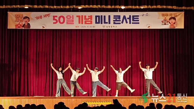 울산 울주군 남창중학교(교장 엄영애)는 지난 20일 인성 사업(프로젝트) ‘하루 세 번’ 50일 기념제 행사를 열었다.